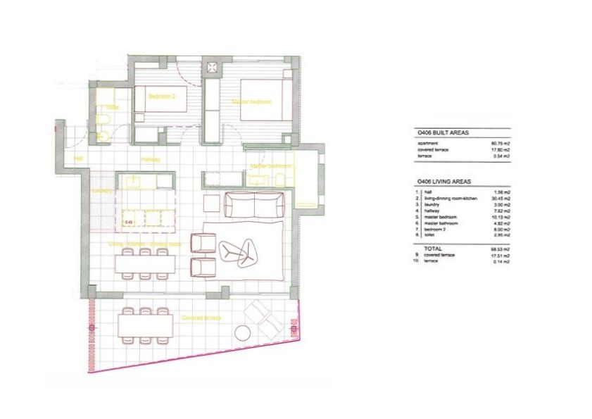 La vivienda tiene una superficie de 80 m² y consta de dos dormitorios y dos baños, uno de ellos en suite.