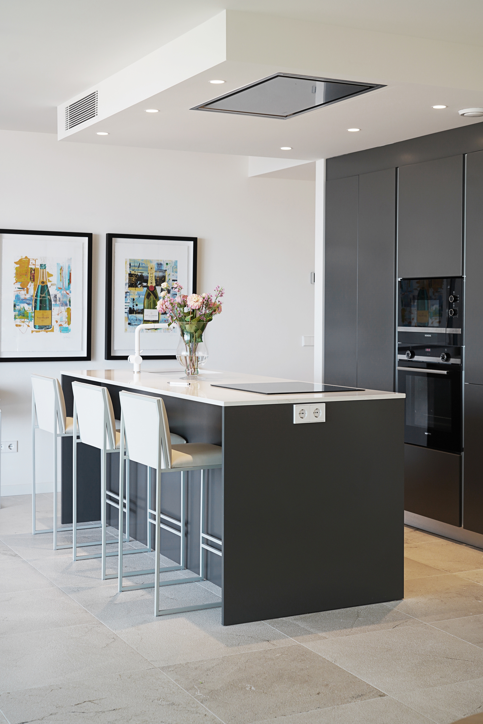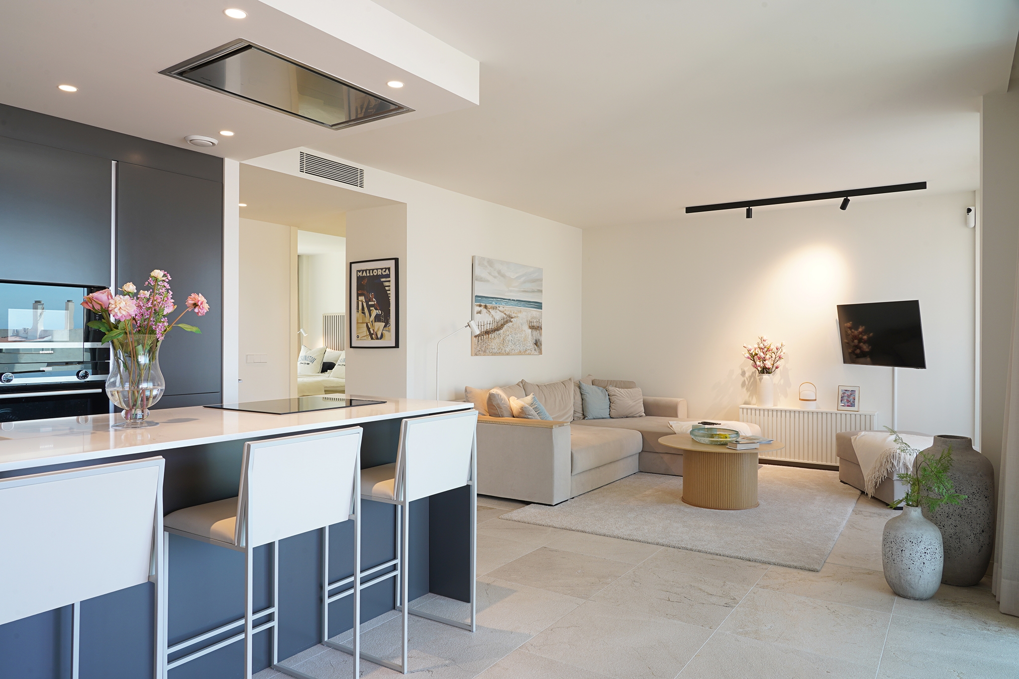 También dispone de una cocina amplia, abierta y totalmente equipada con electrodomésticos Siemens, un salón luminoso y acogedor, y un cuarto de lavandería.