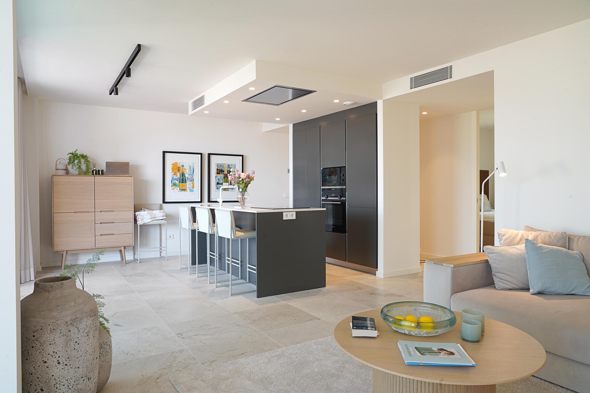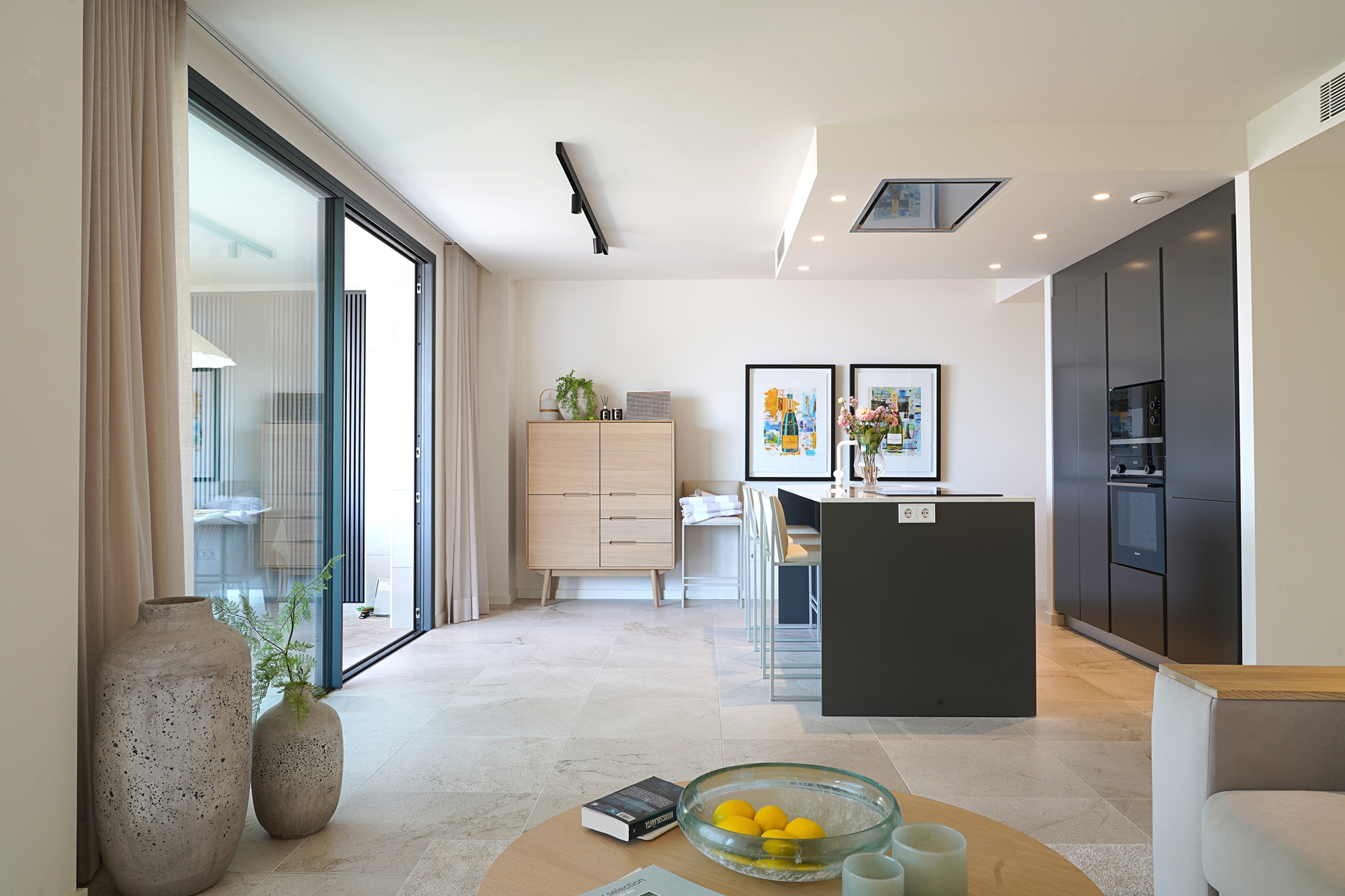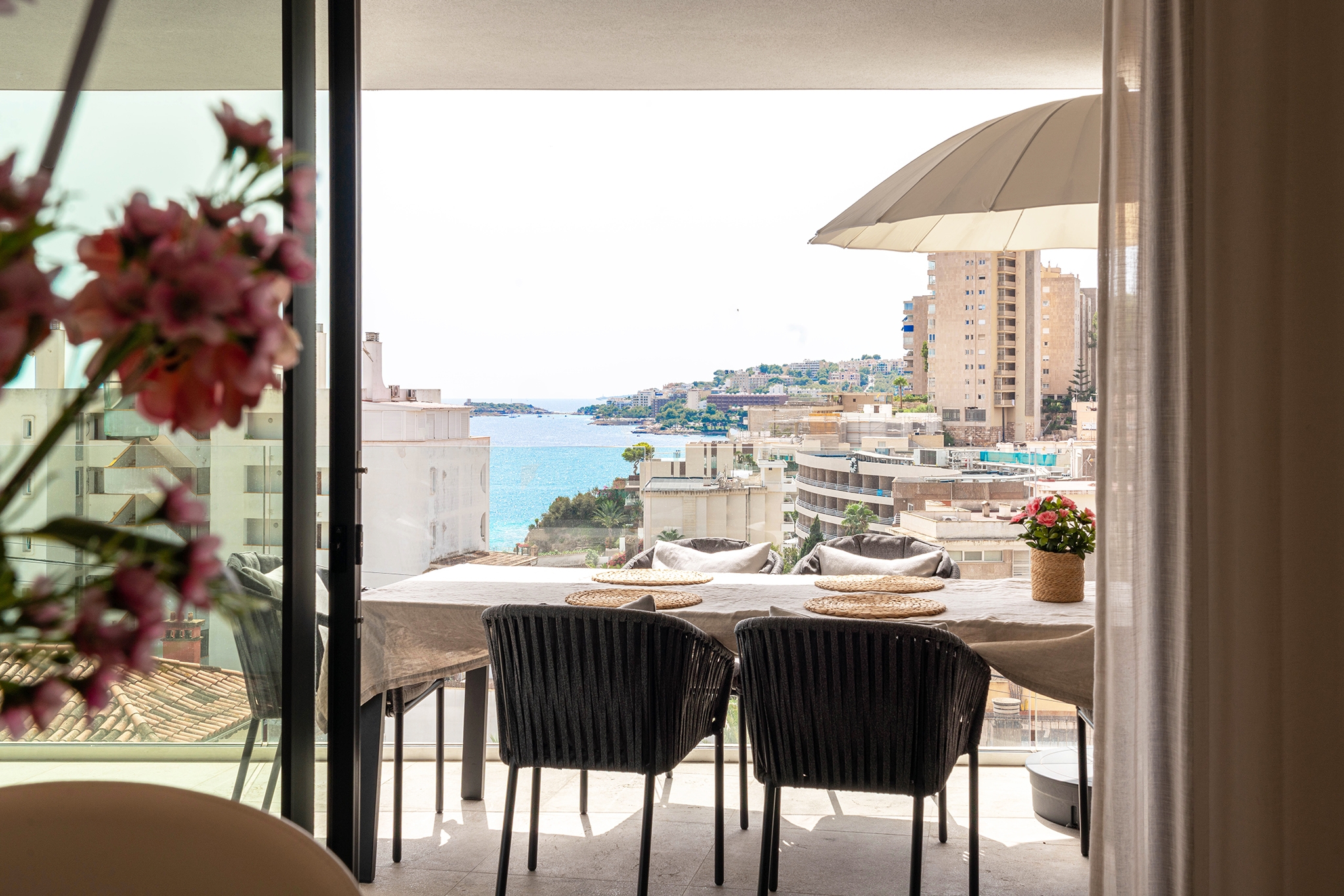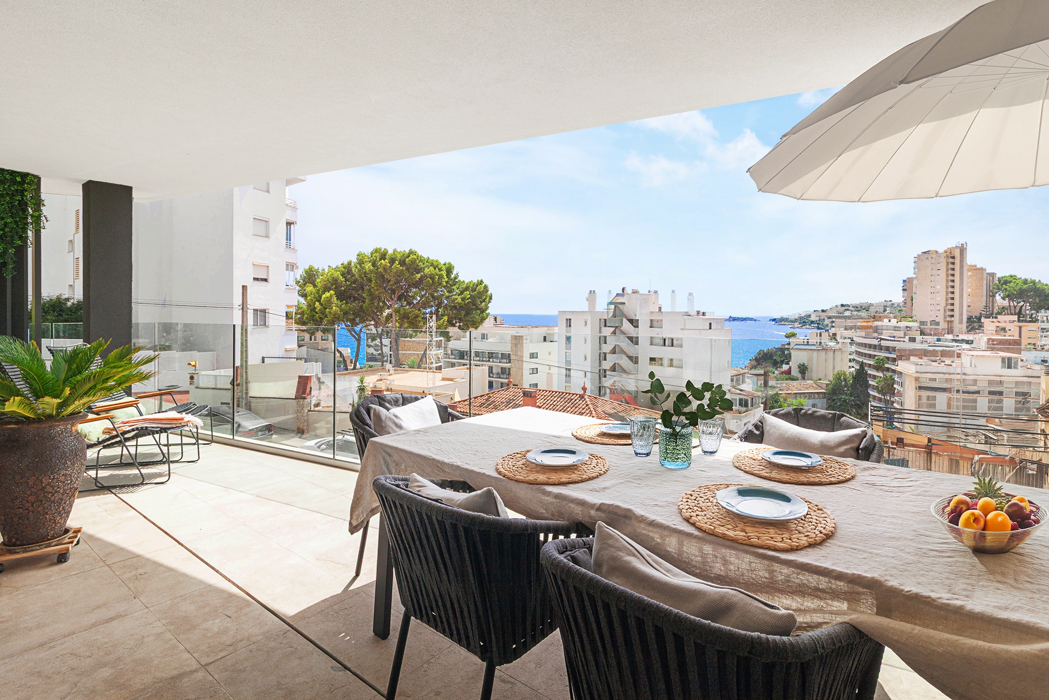 Desde el salón y la cocina se accede directamente a una agradable terraza de 18 m² con bonitas vistas al mar.