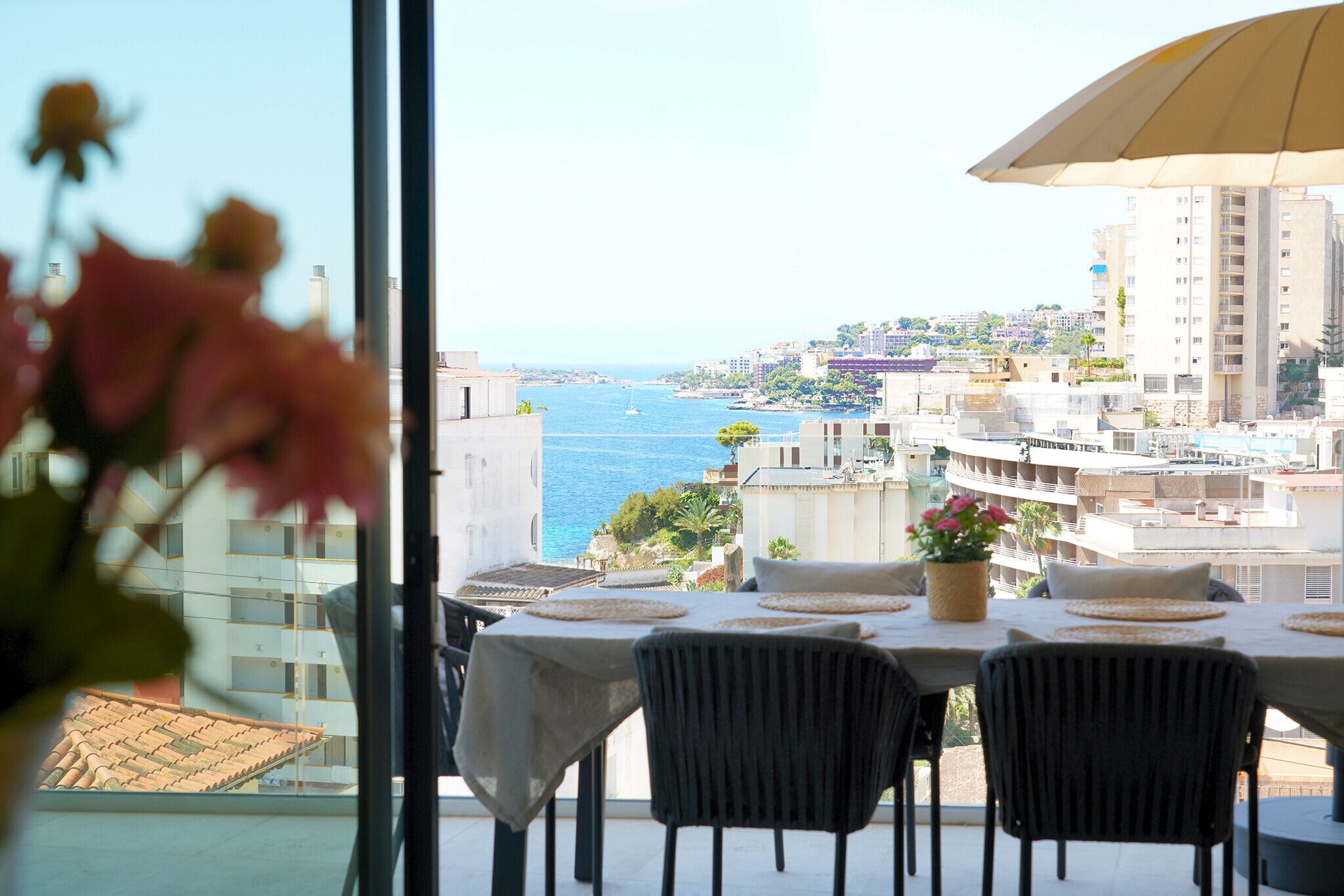 Este precioso piso se encuentra en la cuarta planta de un edificio de nueva construcción y exclusivo, con ascensor, piscina comunitaria, gimnasio y sauna, en Cala Major, a solo unos minutos a pie de la playa.