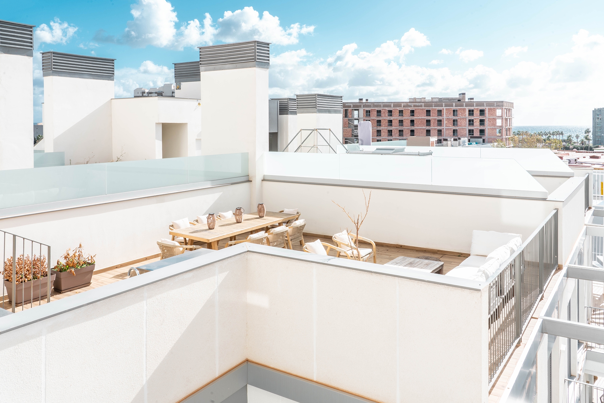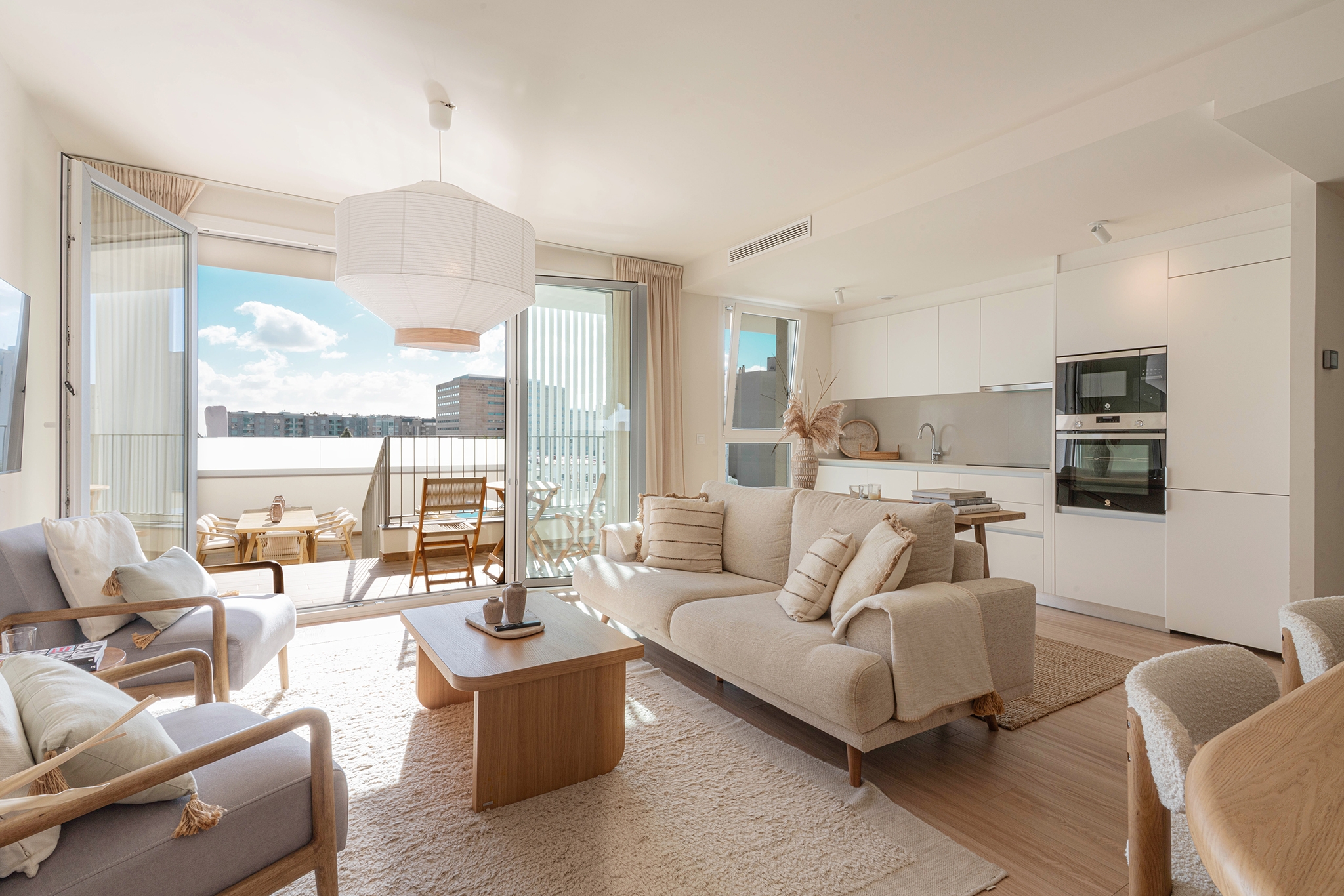 Desde aquí se accede a la gran terraza privada de 55m2 con vistas al mar y sol desde la mañana hasta la noche.