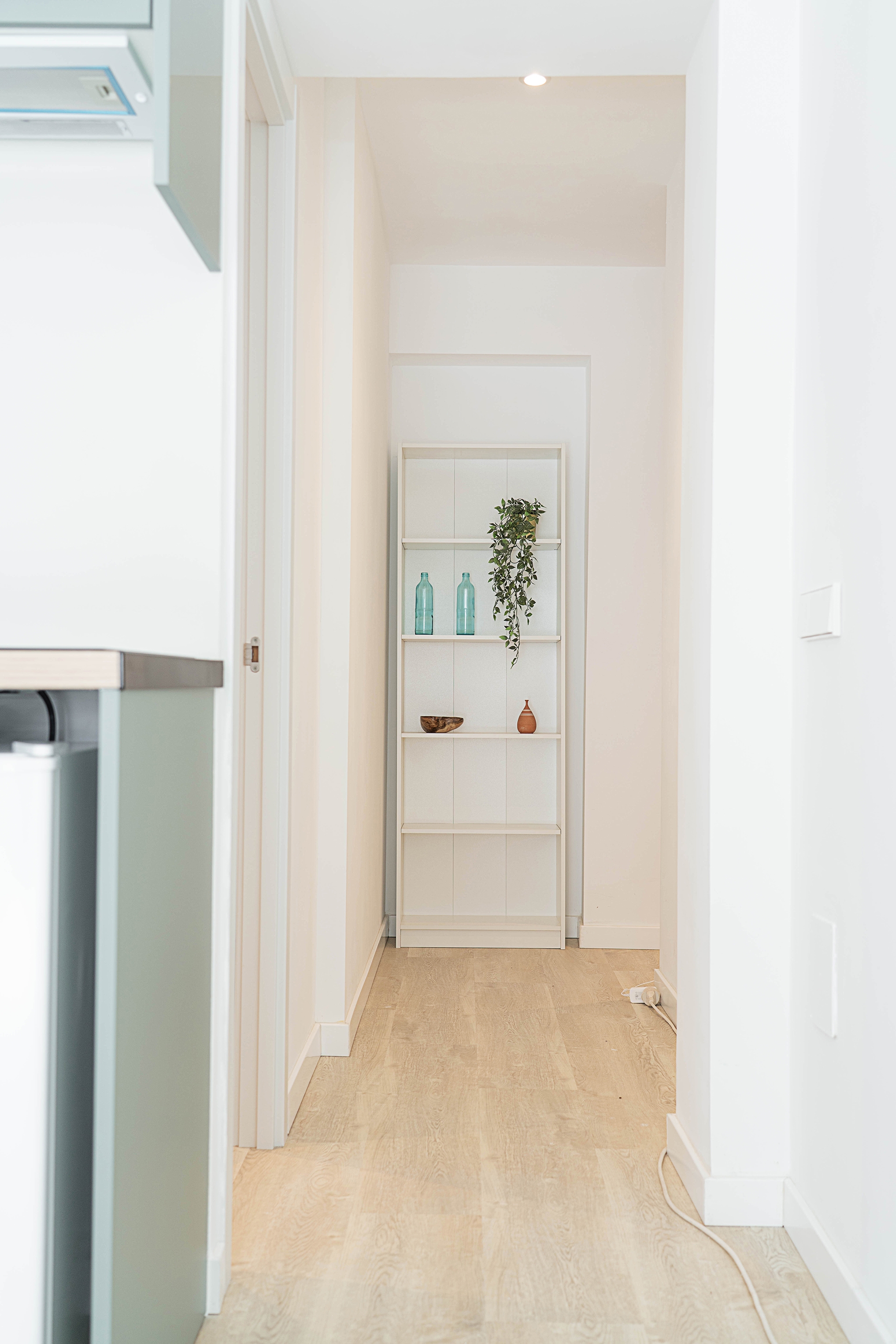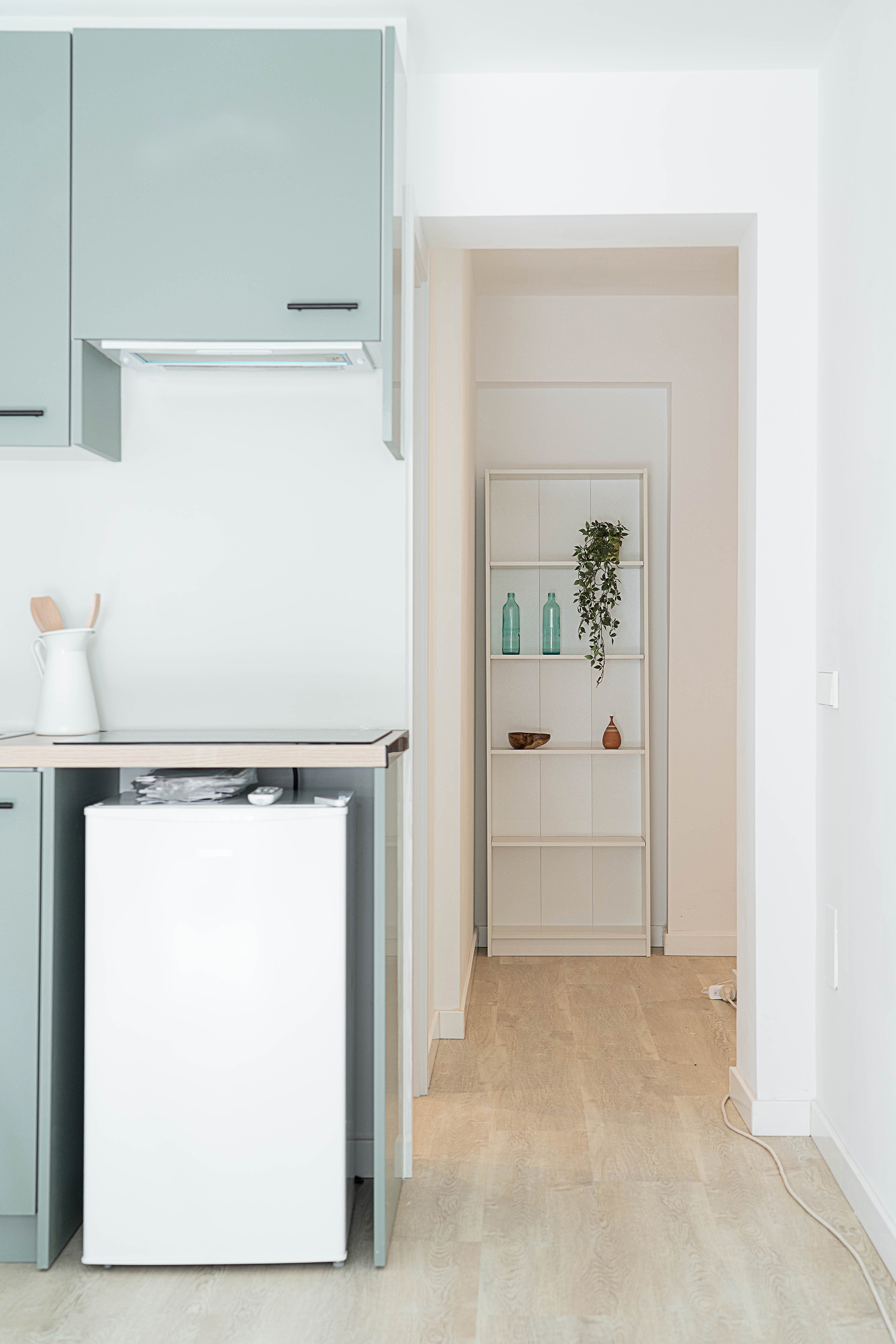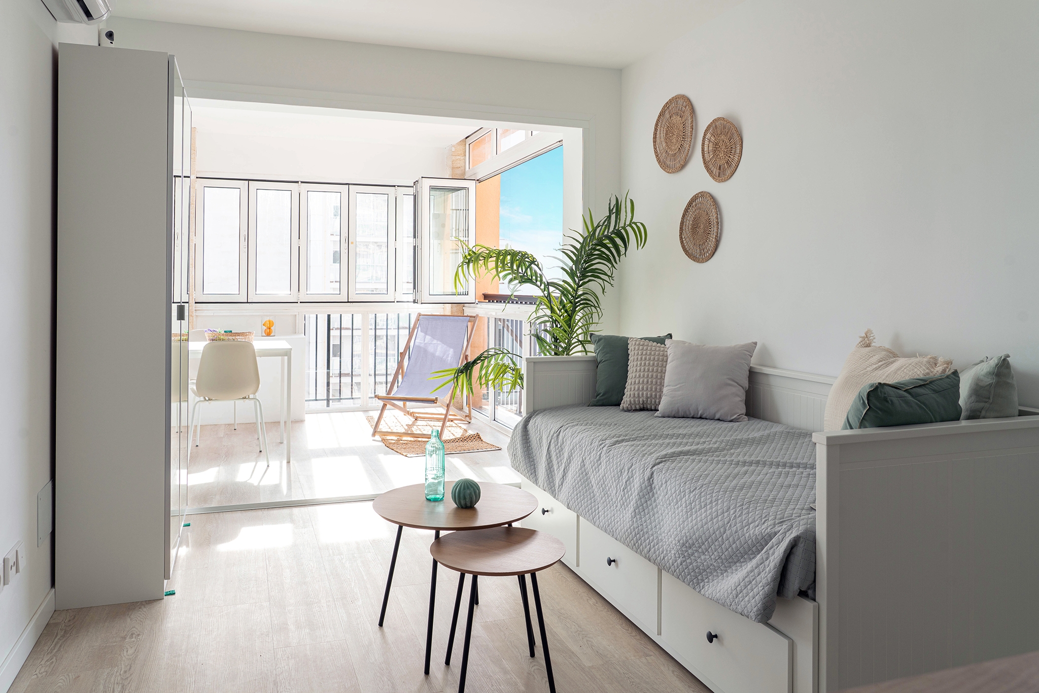 La distribución es abierta y muy bien pensada, con recibidor, cocina, zona de estar/dormitorio y comedor en un solo ambiente.