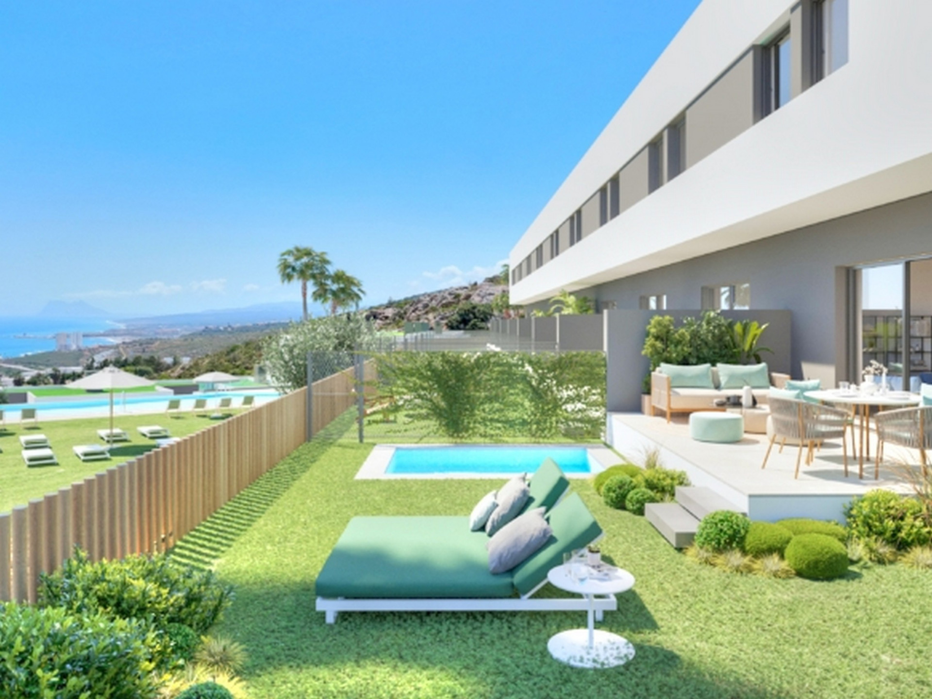 Características principales ✅ Elegante adosado de 3 dormitorios con vistas elevadas al mar ✅ Terraza y jardín privados ideales para la vida al aire libre ✅ Interiores luminosos de planta abierta con acabados modernos ✅ Cocina equipada con electrodomésticos de alta calidad ✅ Aparcamiento privado, armarios empotrados y acceso seguro ✅ Gimnasio, spa, piscina, jardines, coworking y salón de residentes ✅ Eficiencia energética A con sistemas sostenibles ✅ Cerca de playas, puertos deportivos, restaurantes y golf
