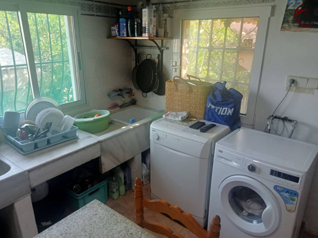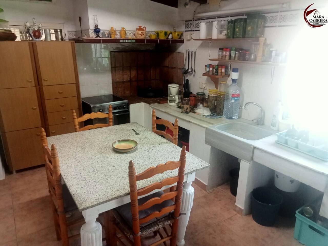 La casa principal ofrece 4 habitaciones (una usada como salón), comedor muy amplio, cocina americana, una segunda cocina exterior y una tercera junto al garaje.